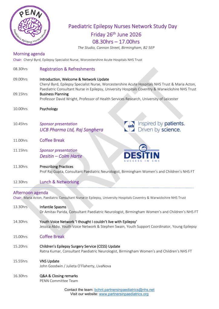 The Paediatric Epilepsy Nurses Network (PENN) would like to invite you to register now for their inaugural Study Day.